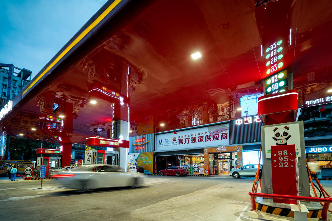 古城加油加氢站是中国石油四川销售公司建设的首座油氢合建站。它的出现,大大缓解了郫都区一百多辆公交车排队加氢的压力,并为成都大运会带来科技享受和低碳贡献,成为了一张“绿色名片”。