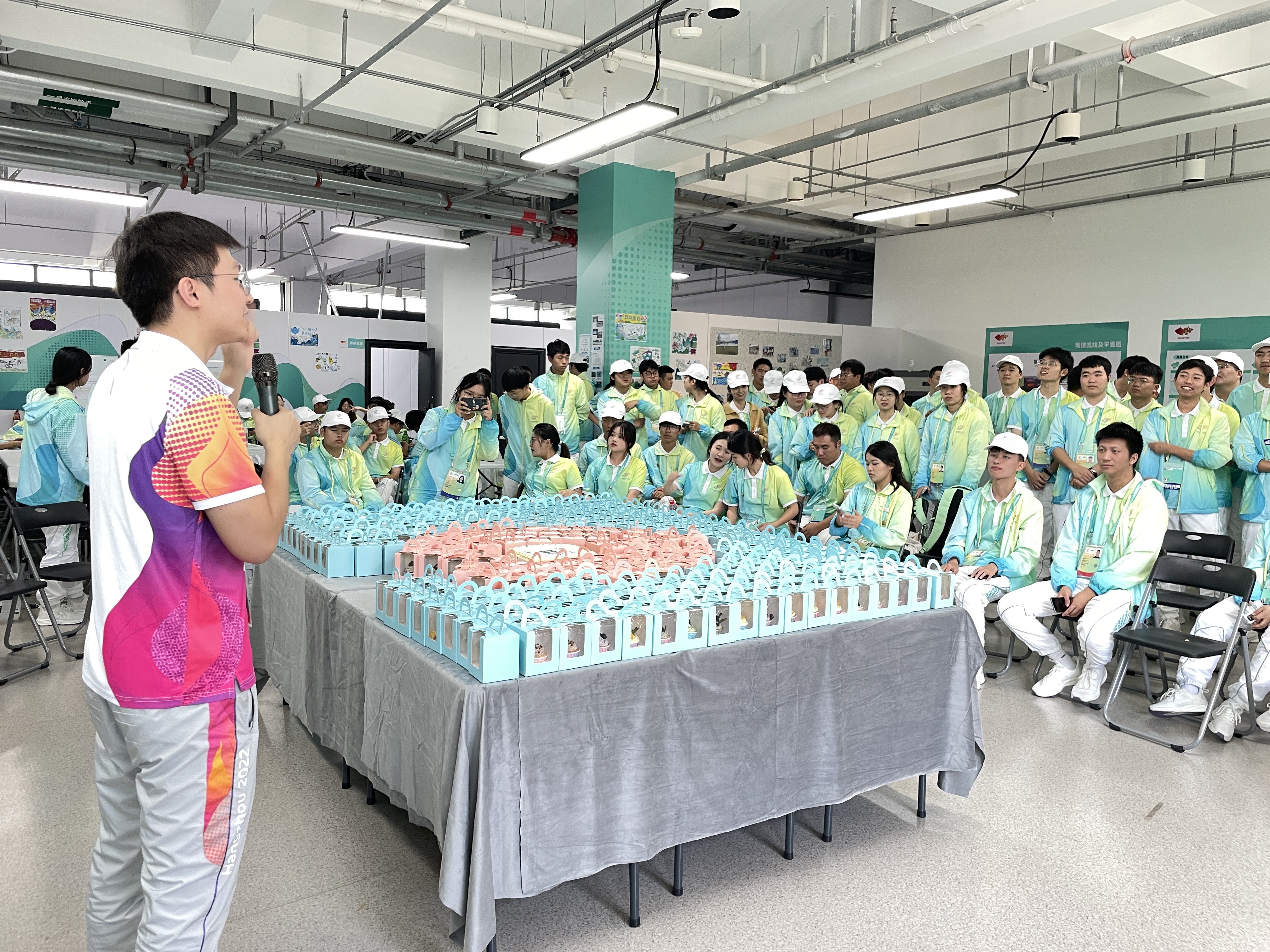 在富阳水上运动中心,和他一样参加杭州亚运会和亚残运会志愿服务工作的同学还有300多名。因与“亲和”谐音而被称作“小青荷”的志愿者们,身着白绿相间的统一服装,在青山绿水间上演着“小荷才露尖尖角”。