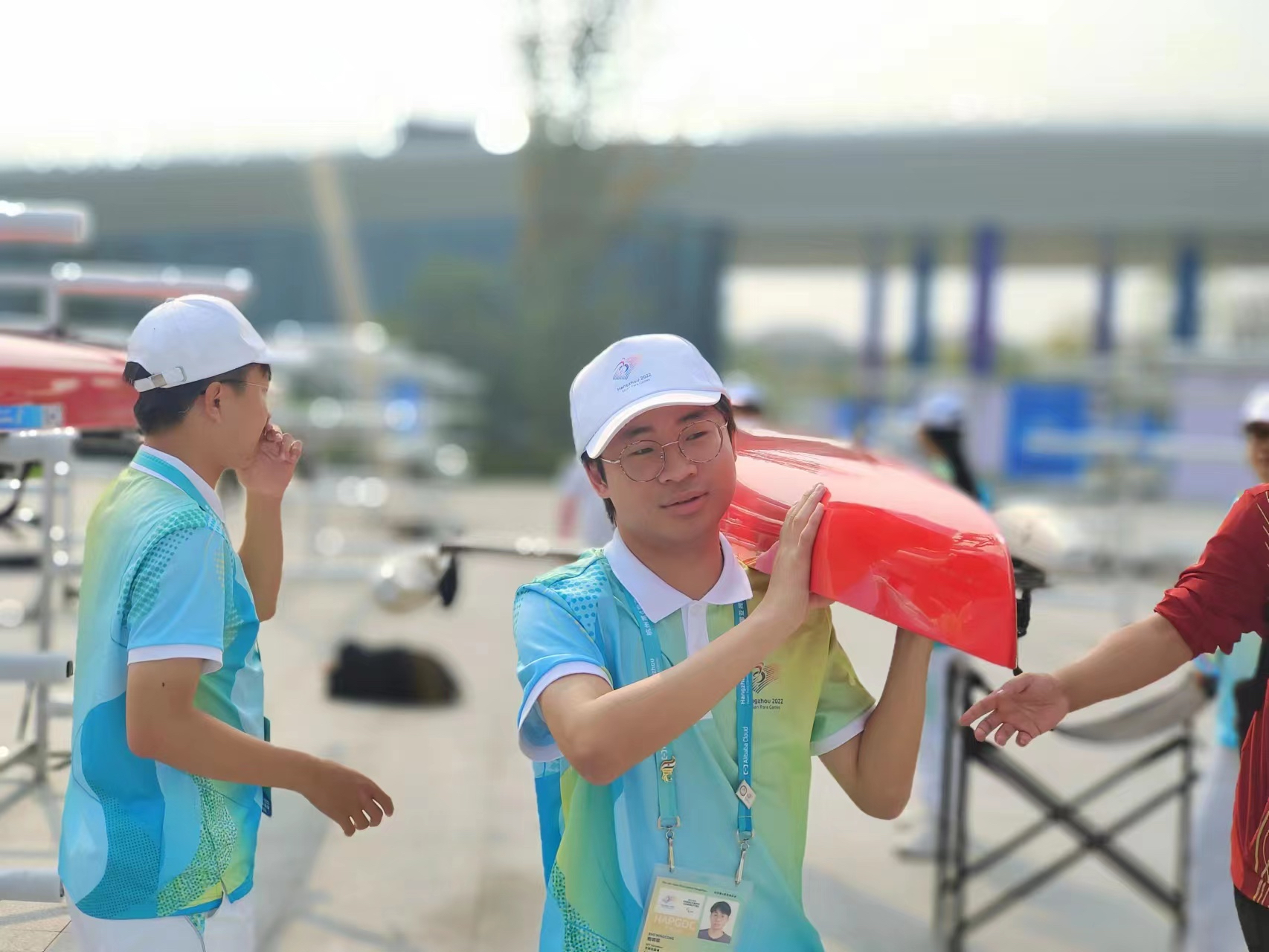 新华社杭州10月27日电(记者戴锦镕)“一二、一二……”24日在杭州富阳水上运动中心,亚残运会皮划艇项目男子VL3级决赛刚刚结束,志愿者鲍明聪正顶着太阳,和赛后舟艇检查区的“小青荷”们一起把舟艇搬运到指定地点。从亚运会到亚残运会,他累计进行志愿服务40余天。