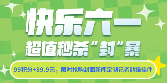 超值秒杀“封”暴再度来袭!封面秒杀精彩继续!6月2日(周一)上午10点,99积分+89.9元,重磅加推神秘萌物——限定款“记者熊猫挂件”。挂件造型特别定制,身背相机,手握话筒,萌趣十足。它不仅是超萌的包包、钥匙挂饰,更是在孩子心中悄然种下“新闻理想”的神奇种子!