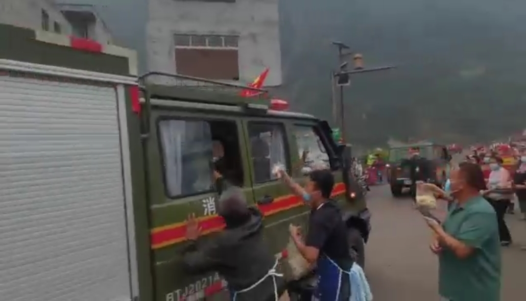 “装到!装到!”9月13日,当消防车驶离泸定时,当地群众追着消防车,不停将手中的食物往消防车里塞甚至直接“甩”进去。虽然只是馒头、鸡蛋等最家常不过的食物,但对物资紧缺的灾区群众而言,这“倾囊相赠”让人泪目。