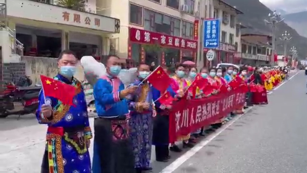 当“汶川哥哥”抵达汶川后,各族群众以最高的礼节欢迎英雄们凯旋,为他们举行了最具仪式感的欢迎仪式。他们穿着节日的盛装,捧着象征吉祥祝福的羌红和哈达,带着具有汶川特色的水果,在汶川县森林消防大队营区门口等候着。