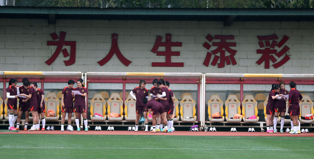 5月23日,中国女足队员在训练前做准备。新华社记者 贾浩成 摄