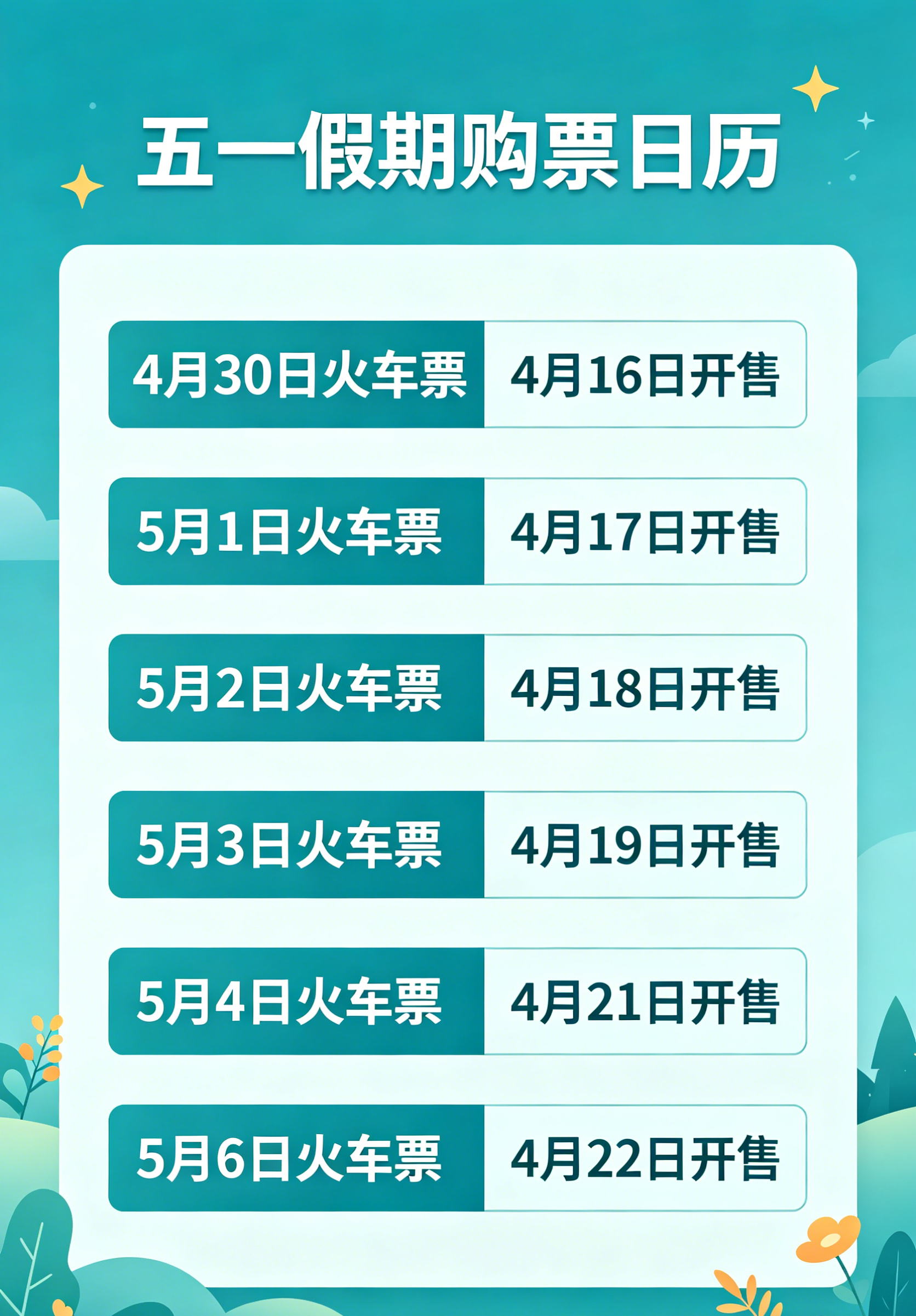 五一假期购票日历