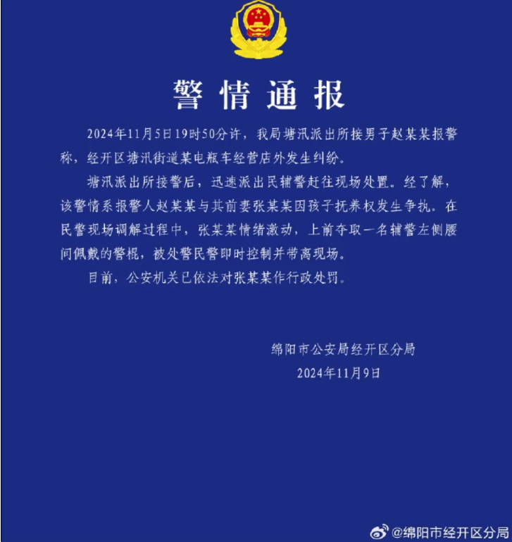 11月9日,绵阳市公安局经开区分局警情通报: