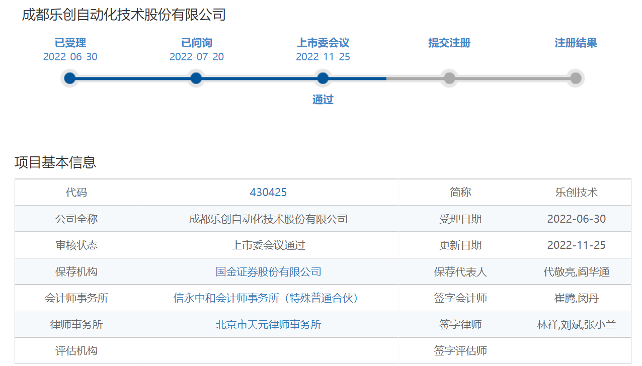 开市一周年,北交所进入快速扩容阶段,越来越多的四川专精特新中小企业也在加速向此集结。据北交所官网消息,近日,成都乐创自动化技术股份有限公司(以下简称“乐创技术”)顺利过会,成为北交所第170家过会企业,也是年内第4家北交所过会的川企。
