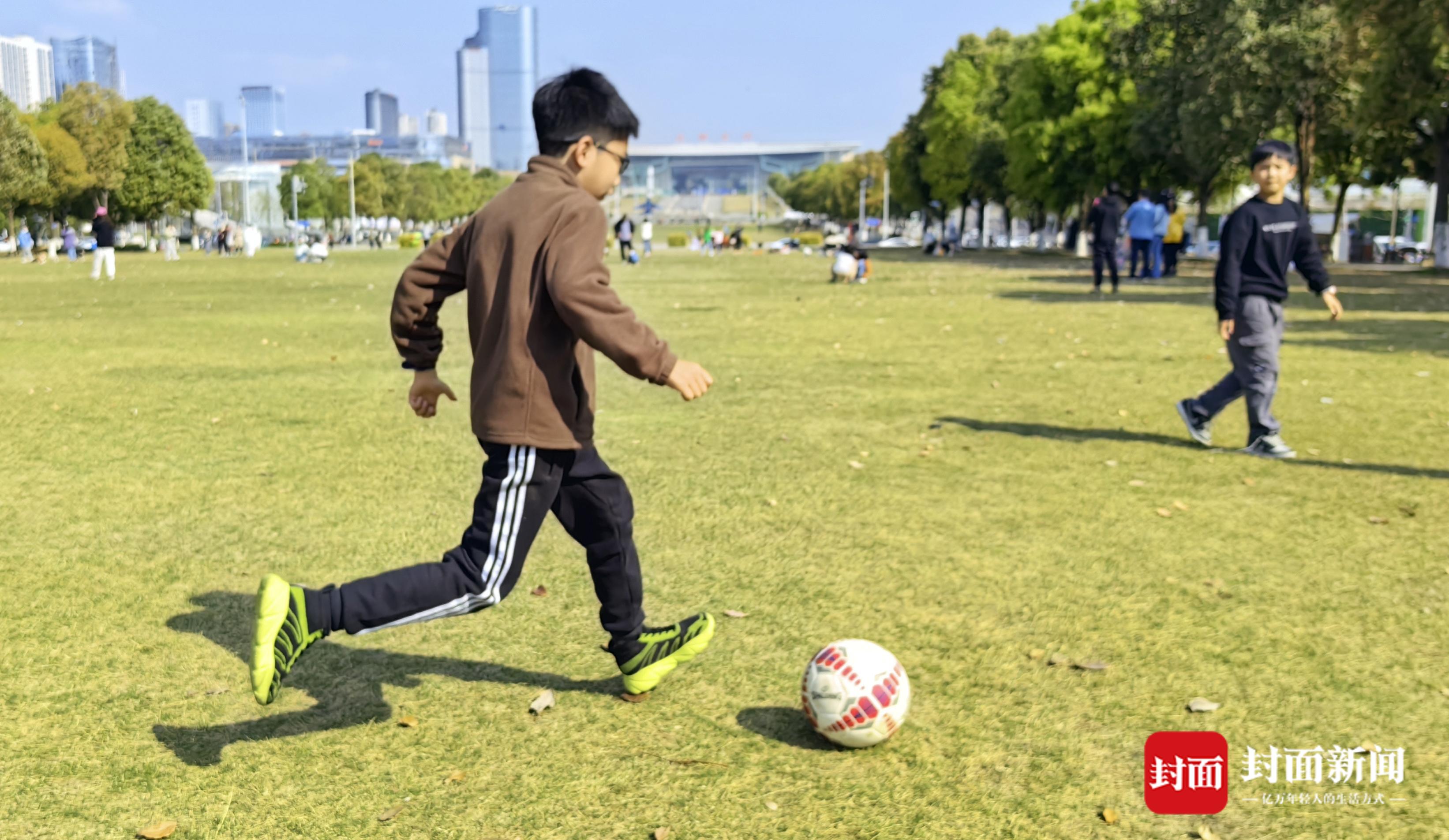 一群小朋友在踢“坝坝球”,玩得不亦乐乎。