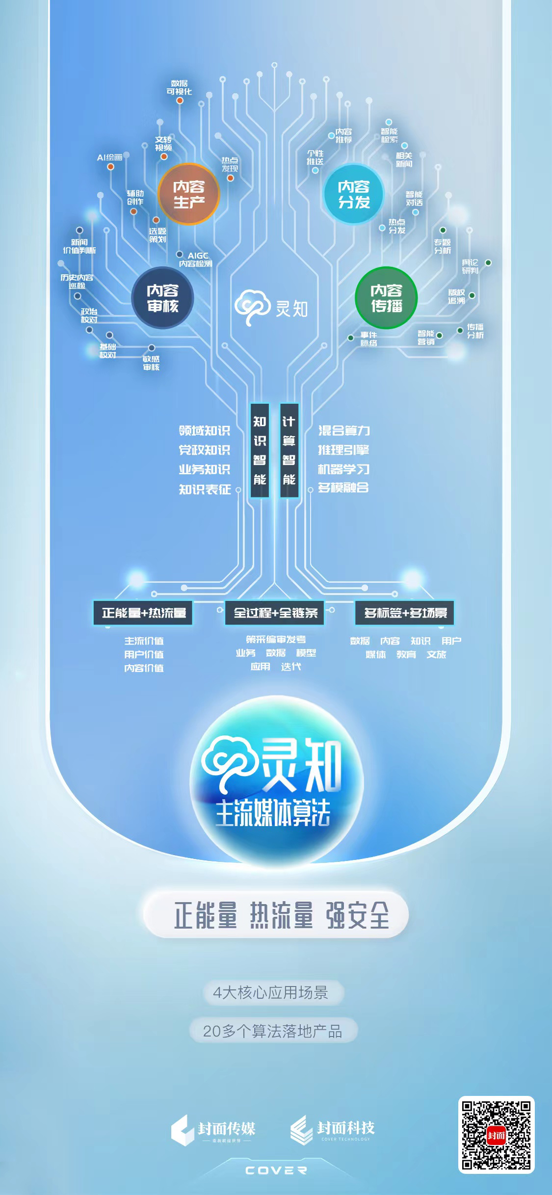 尤其对于国内众多技术实力还不够强大、处于转型期的传统媒体来说,如何解决AI算法技术在赋能同时所带来的问题,就是重中之重。业内也急需主流媒体算法提供技术能力和产品。11月15日,在2023 AI+智媒科技大会上,由封面科技打造的正能量、热流量、强安全的“灵知”主流媒体算法正式发布,给出了全场景、全链条的智能化解决方案。