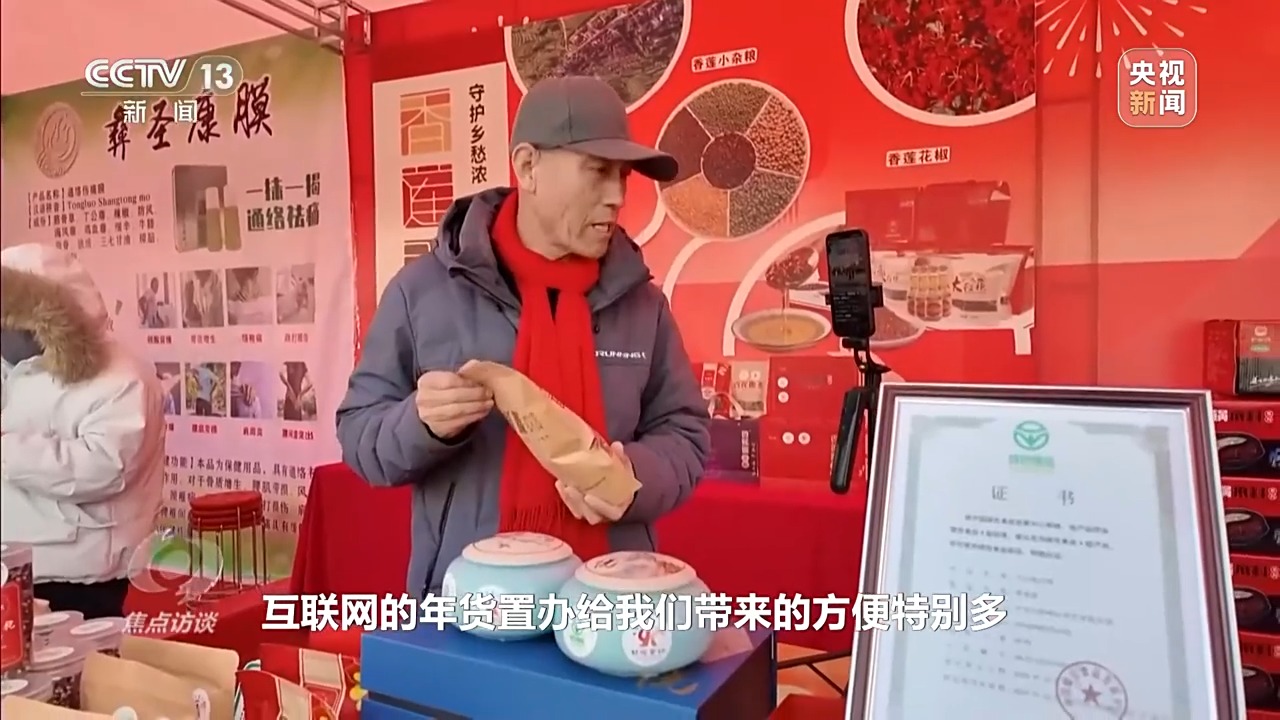 一些农户也开始学着直播,他们不光把自家种的好产品推介出去,空闲时再看看其他人的直播,把自家的年货也都备齐了。