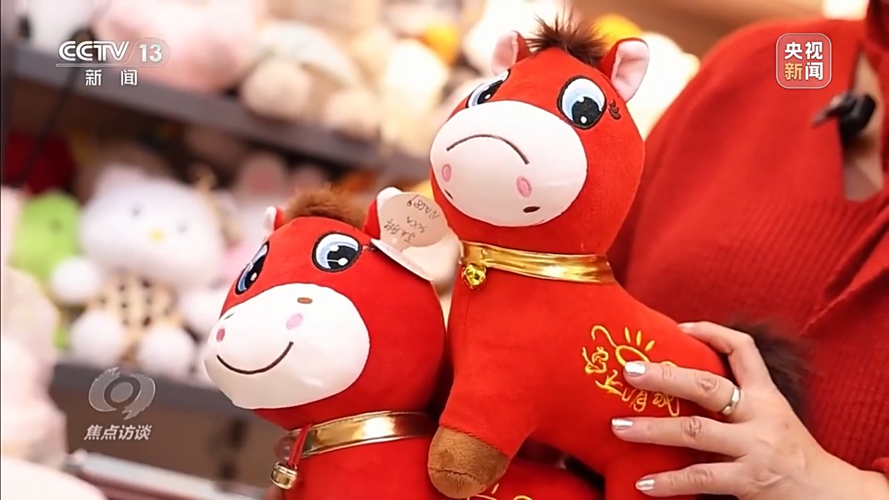 近年来,生肖文化、非遗主题的文创成了新的过年硬通货,给孩子带上两个马年玩偶也是今年的潮流。在浙江义乌,今年春节年货市场里,生肖经济日益火热使得一款“哭哭马”玩偶意外走红。缝反嘴的“错版小马”委屈的表情不但没有被消费者嫌弃,反而因为提供了独特的情绪价值,很快就成了爆款。