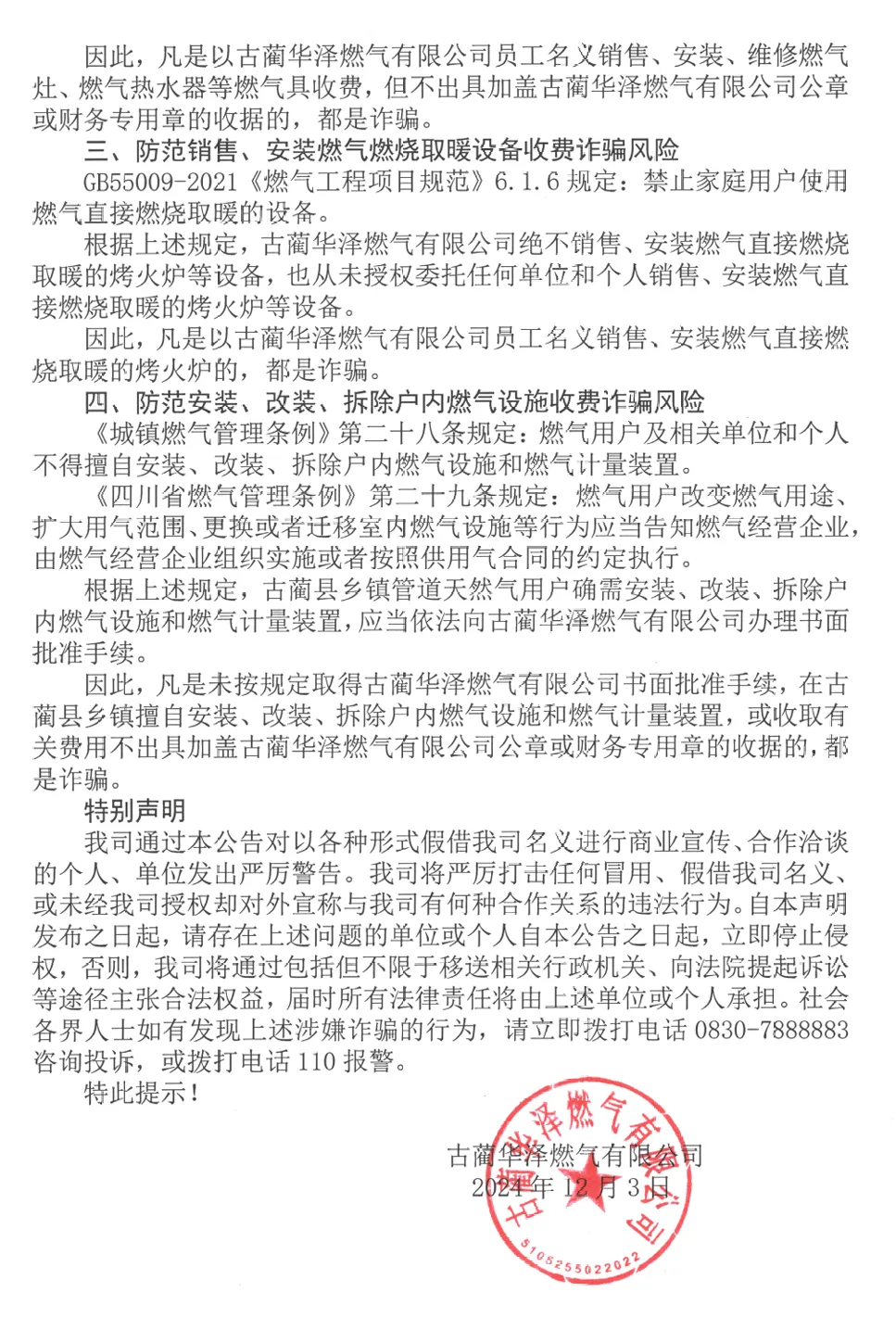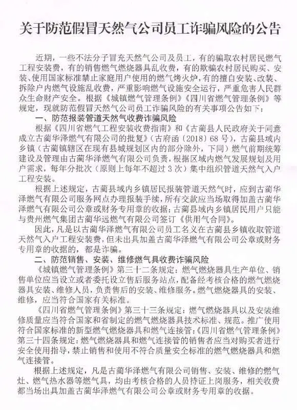 员工上门安装燃气燃烧器具并收取安装费?古蔺华泽燃气有限公司提醒:务必核实身份