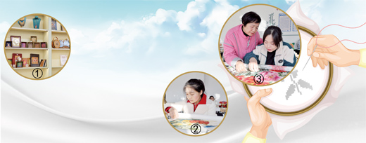图①:新疆博艺斋“美丽工坊”的学员们制作的非遗作品。 本报记者 尚嵘峥摄 图②:在甘肃省庆阳市西峰区“美丽工坊”,残疾绣娘袁丹丹在进行刺绣。 盘小美摄 图③:在甘肃省庆阳市西峰区“美丽工坊”,左焕茸在指导残疾绣娘贾莉(右)刺绣。 盘小美摄