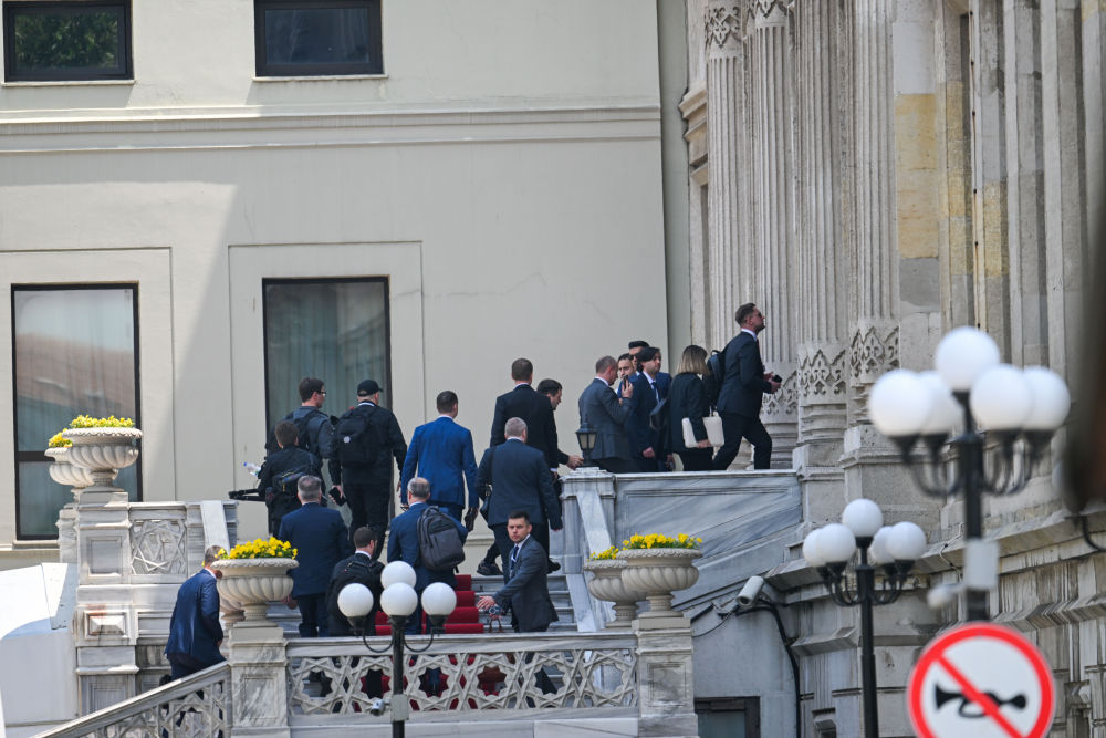 6月2日,乌克兰代表团人员走进谈判地点土耳其伊斯坦布尔彻拉安宫。新华社记者刘磊摄