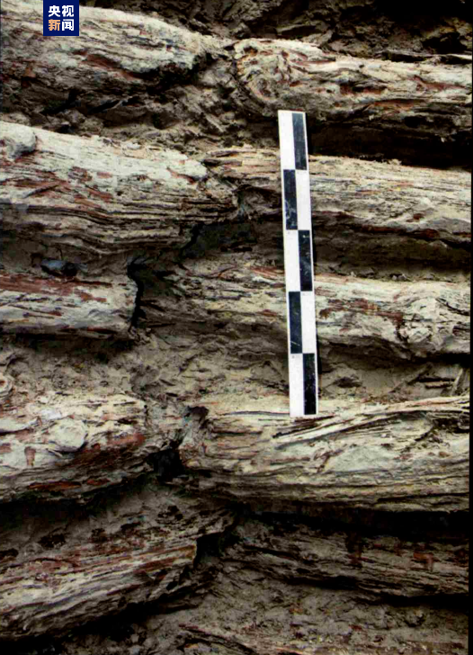 其中,支护木多为柏木,基本保持木头原状,有的支护木上甚至还整体保留有树皮。在上下叠摞的两根支护木的接触位置,部分层位经过人为的修整加工,不仅扩大了接触位置面积,而且还保证了接触位置的平整、稳定,同时为了保证井圈之间衔接紧凑以及每层井圈的整体水平性,木柱之间局部地方还用铁斧、木板、木棍来找平、挤压(图6)。井底为含卵石的砂层。