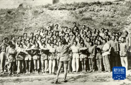 1939年,冼星海指挥鲁艺学员排练《黄河大合唱》。新华社发(延安文艺纪念馆供图)