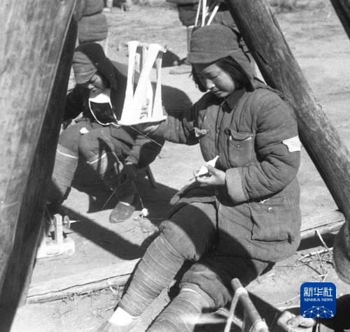 1942年,延安女干部在纺线。 郑景康 摄