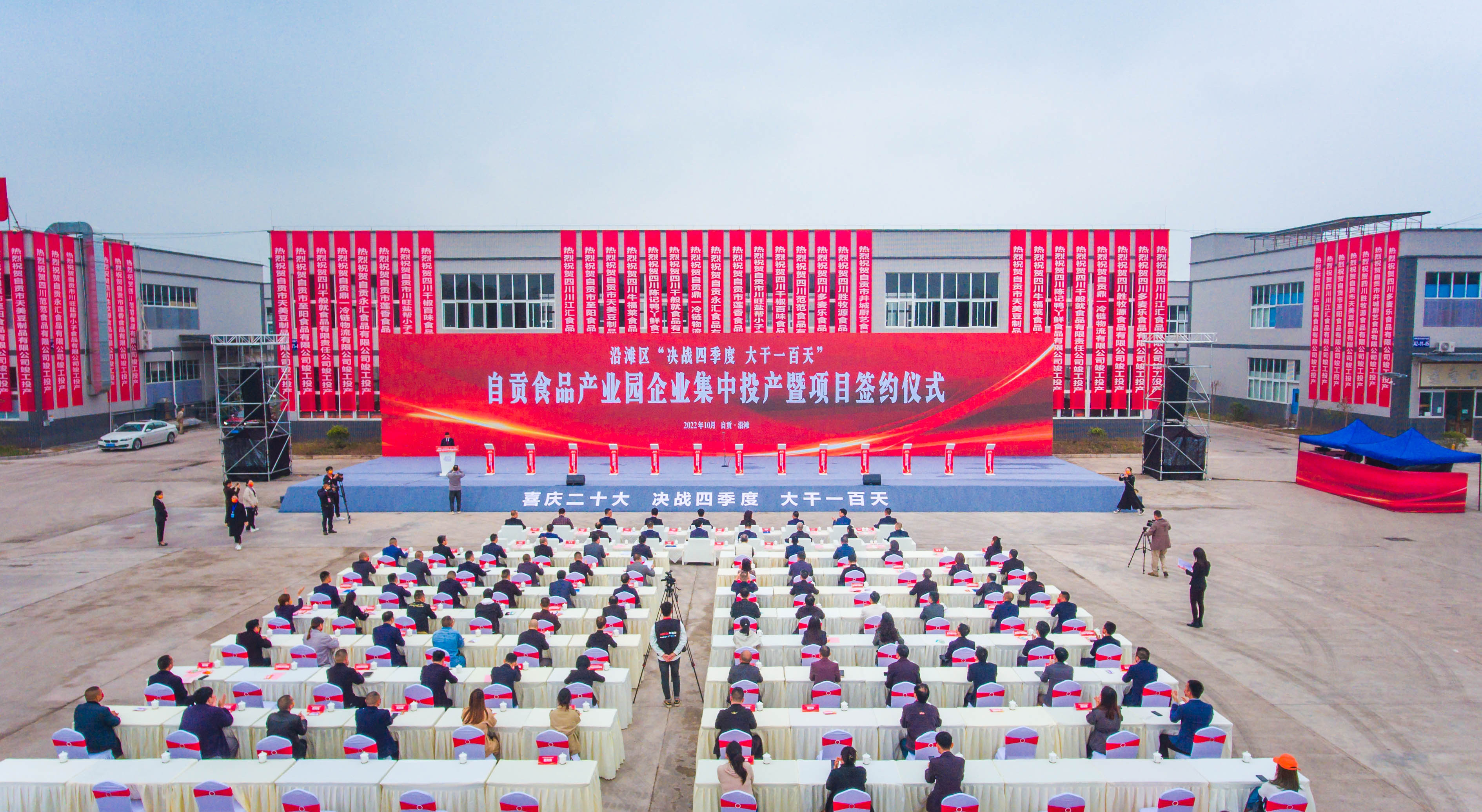 10月28日,自贡市沿滩区举行自贡食品产业园企业集中投产暨项目签约仪式。当天,15户企业集中投产,预计年产值将达到7.5亿元,为沿滩高质量发展注入强劲动能。据悉,自贡食品产业园是西南地区最大的专业化食品产业园区,也是四川省重点培育的5+1特色产业园区。