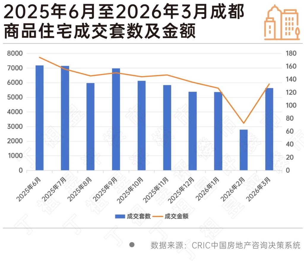 成都:3月新房累计成交约5641套,环比上涨101.9%