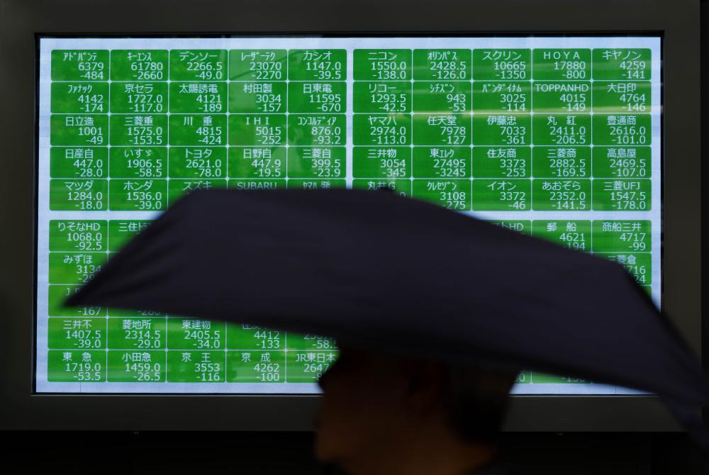 8月2日,在日本东京,行人经过一处股指信息电子显示屏。新华社记者张笑宇摄