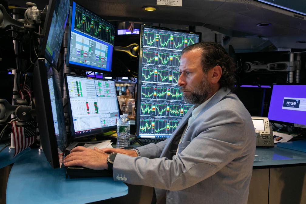 5月3日,交易员在美国纽约证券交易所交易大厅工作。新华社发(郭克摄)