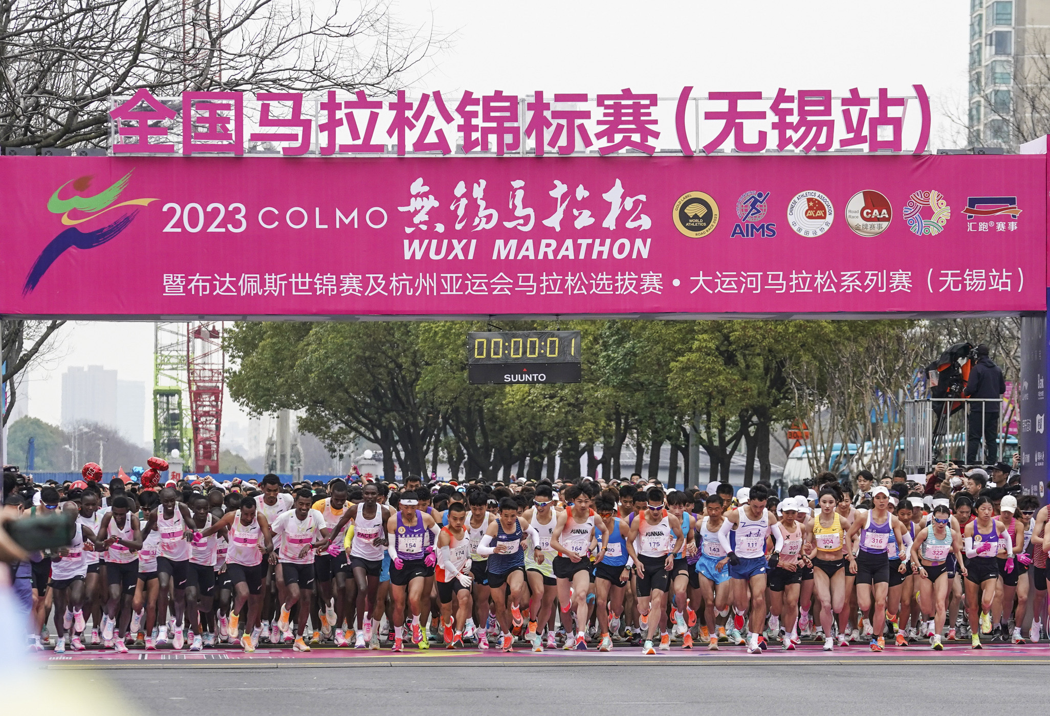 3月19日,无锡马拉松鸣枪开赛,参赛选手从起点出发。新华社记者李博摄