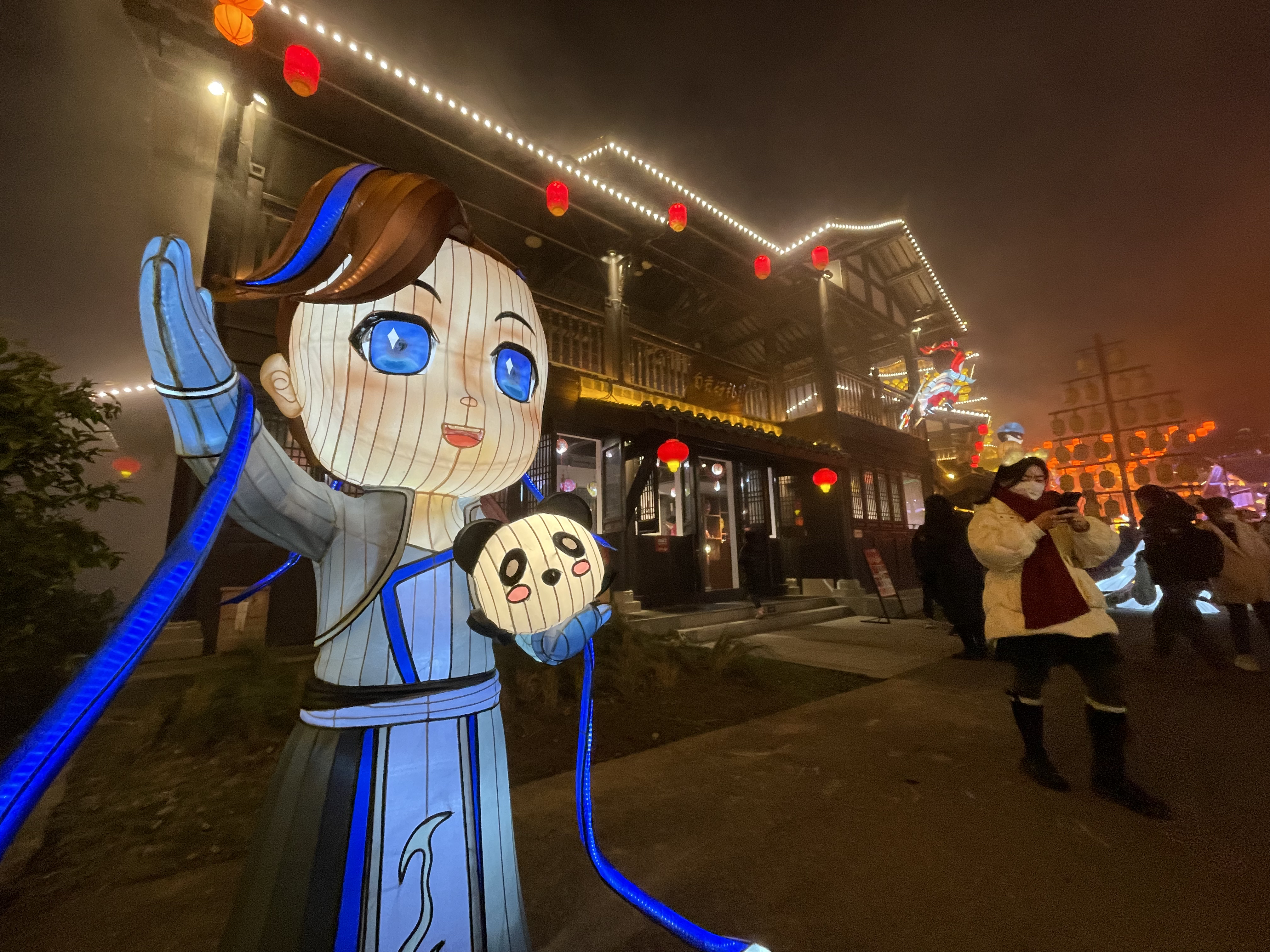 本届灯会,还有两组年轻人特别感兴趣的灯组:剑侠情缘3主题区和《英雄联盟手游》主题区。剑侠情缘叁主题区以《剑网3》IP为核心、“国风美学大成+潮流视觉创意”为基调,运用彩灯强大的塑造能力和营造能力,打造武侠主题沉浸式游园体验。《英雄联盟手游》主题专区构建了一个沉浸式的峡谷世界,在这里游客可以近距离感受召唤师峡谷英雄、峡谷生物。