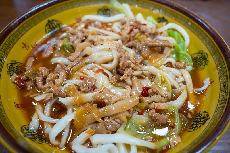 山西刀削面,以其适中的宽度和边缘微妙的波浪形态,展现着独特魅力。其口感筋道且滑爽,搭配上浓郁鲜香的汤底,每一口都能带来满满的满足感。
