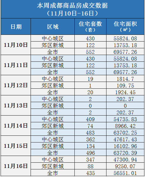 本周(11月10日-11月16日),成都商品房成交总套数2540套,环比上周下降约8%,成交总面积约325254.99㎡。