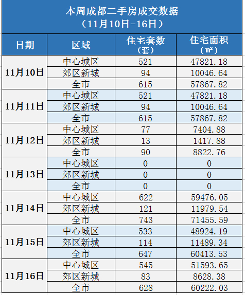 本周(11月10日-11月16日),成都二手房成交总套数3338套,环比上周下降约3.8%;成交总面积316649.55㎡。