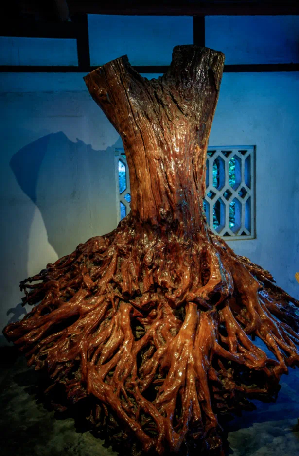 图为三苏祠内的苏宅丹荔老树根。