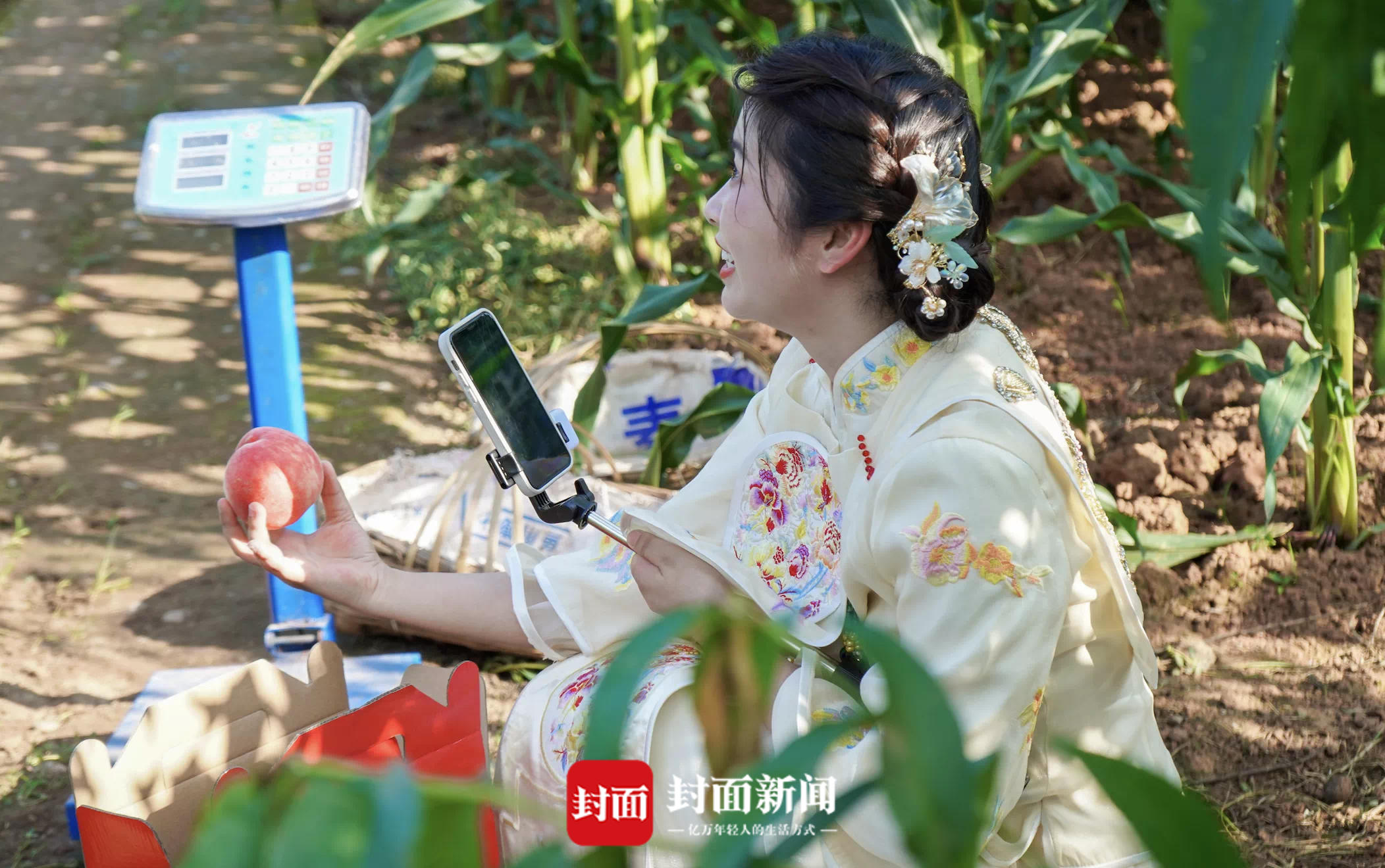在采摘现场,网红达人还进行直播带货,多角度介绍东部新区蜜桃特色,助力农产品销售。走在万亩桃林中亲自采摘蜜桃,果香萦绕,手有余香,也感受着自然的馈赠。