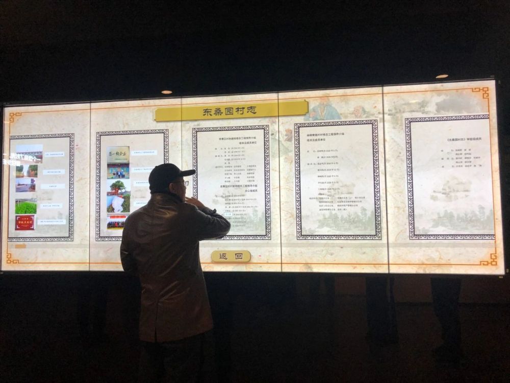 西青区档案馆一级调研员杨鸣起介绍村志的数字化展示 宋瑞 摄