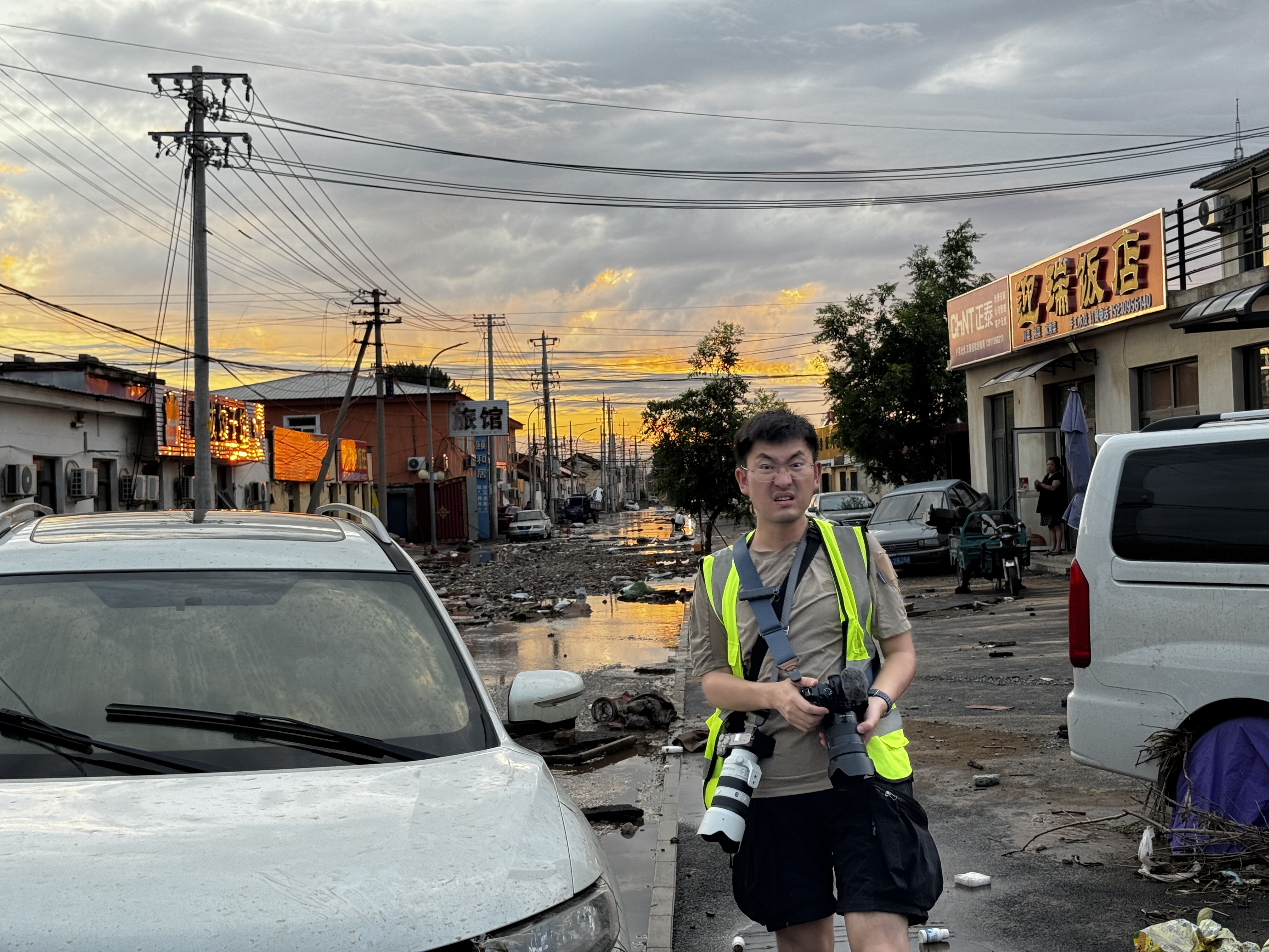 2025年7月29日,杨峰在北京密云区太师屯镇暴雨洪灾现场。