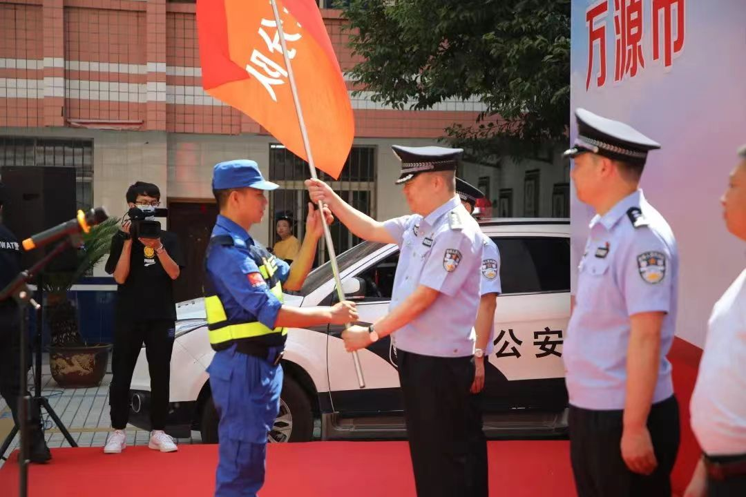 这支队伍以“快反组、冲锋队、专职护学岗”三支队伍为主导,统筹特巡警、交警和城区派出所警力,壮大街面巡防力量,依托武警三大队联勤指挥中心,加强拱卫策应新质力量。组建期间,万源市公安局从法律知识、矛盾调解、警务技能等多方面对“义警”进行培训。6月17日,万源市“义警”队伍正式成立,并举行了授旗仪式。