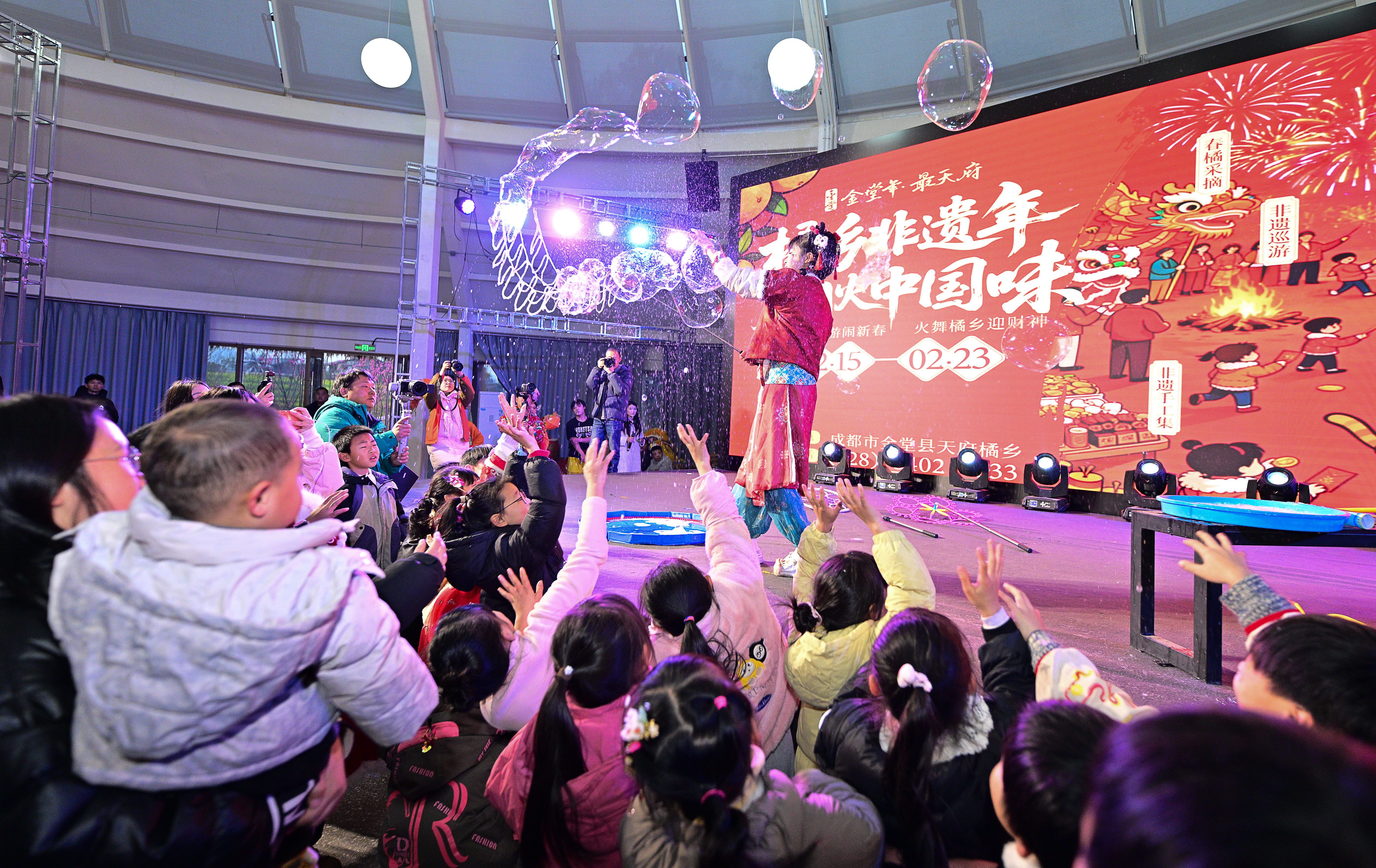 金蛇辞旧岁,骏马迎新春。2月17日,成都市金堂县三溪镇天府橘乡景区橘香萦绕、年味正浓,“橘乡非遗年 烟火中国味”天府橘乡2026非遗体验活动暨“天府好物集・金堂村糖会”三溪专场正式拉开帷幕。这场融非遗体验、民俗展演、产业推广、文旅消费于一体的新春盛会,在万亩橘林间,为市民游客奉上一场兼具文化底蕴与田园烟火的新春体验,绘就出产业兴旺、文旅融合的乡村发展新图景。