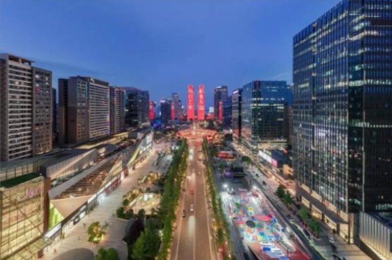 此外,打造以双塔为主的夜景灯光秀,提升交子大道两侧行道树及建筑退距内绿植灯光,形成有重点、有留白、张弛有度的夜景景观。结合展示秀场、音乐派对等艺术展览秩序保障,实施市容秩序分级分类管理,增强交通引导,规范活动现场秩序,构建沉浸式逛游空间和潮流运动的立体多维慢行街区。