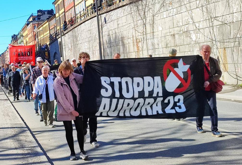 2023年4月22日,人们在瑞典斯德哥尔摩参加抗议活动。瑞典全国近20个城市当日举行活动,抗议在瑞典举行大规模国际军事演习、反对瑞典加入北约。新华社发(帕特里克·埃克斯特兰德摄)