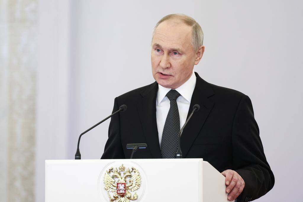 2023年12月8日,俄罗斯总统普京在莫斯科克里姆林宫出席“祖国英雄日”庆祝仪式。新华社/塔斯社