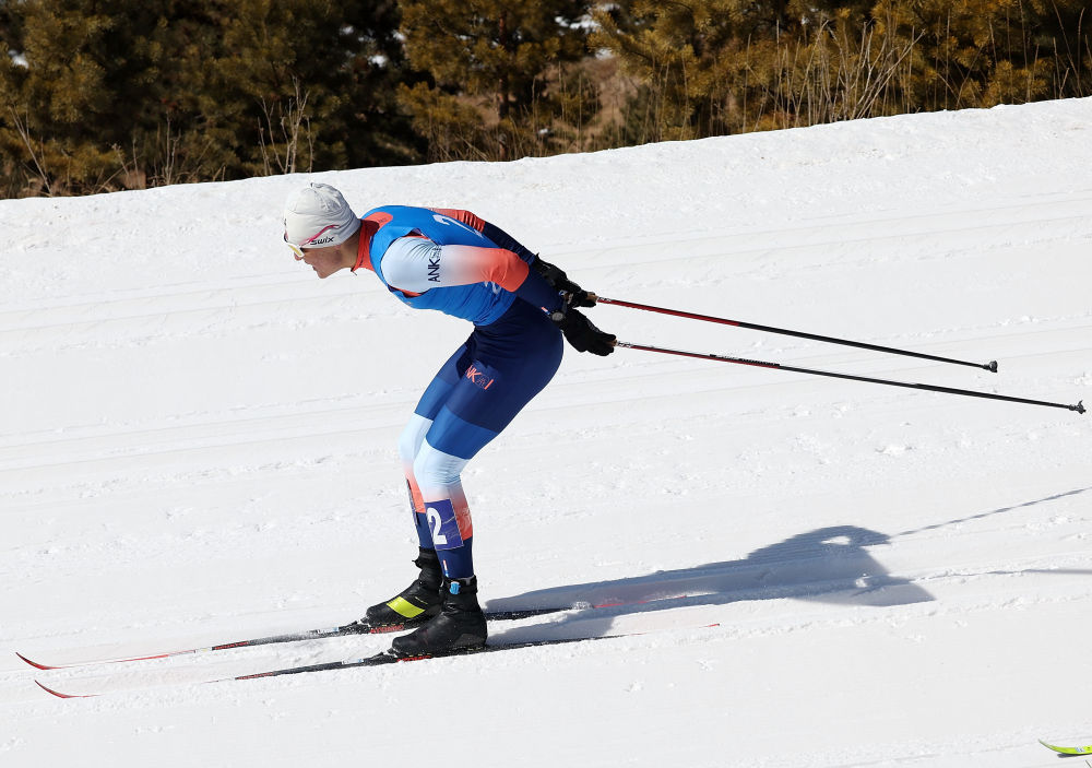 2月25日,新疆队选手赛木哈尔·赛力克在比赛中冲刺。新华社记者 张晨霖 摄