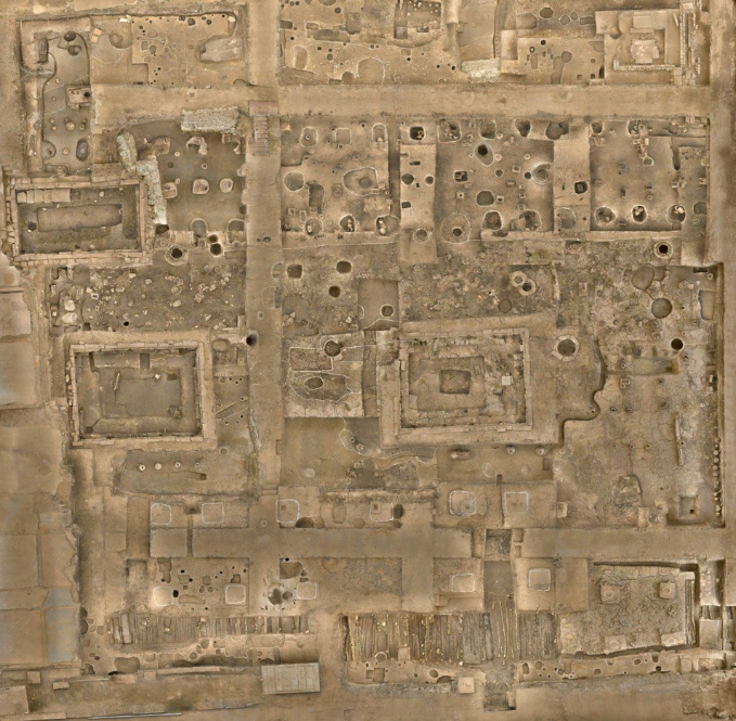 汉六朝会稽郡大型官署建筑1号建筑基址正射影像,绍兴市文物考古研究所提供