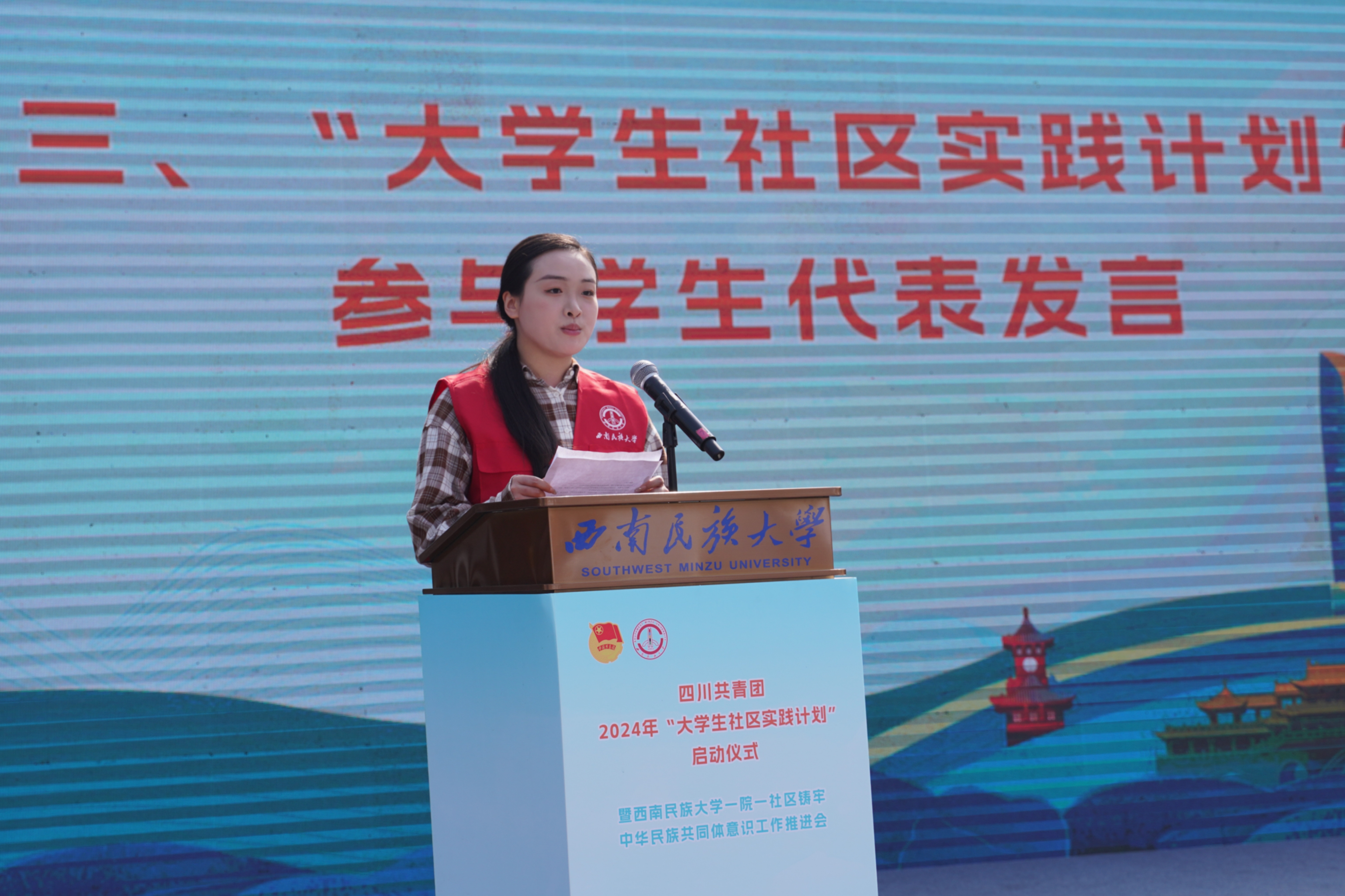 4月2日,四川共青团2024年“大学生社区实践计划”启动仪式暨西南民族大学“一院一社区铸牢中华民族共同体意识”工作推进会在成都市双流区蓝光空港国际城举行。