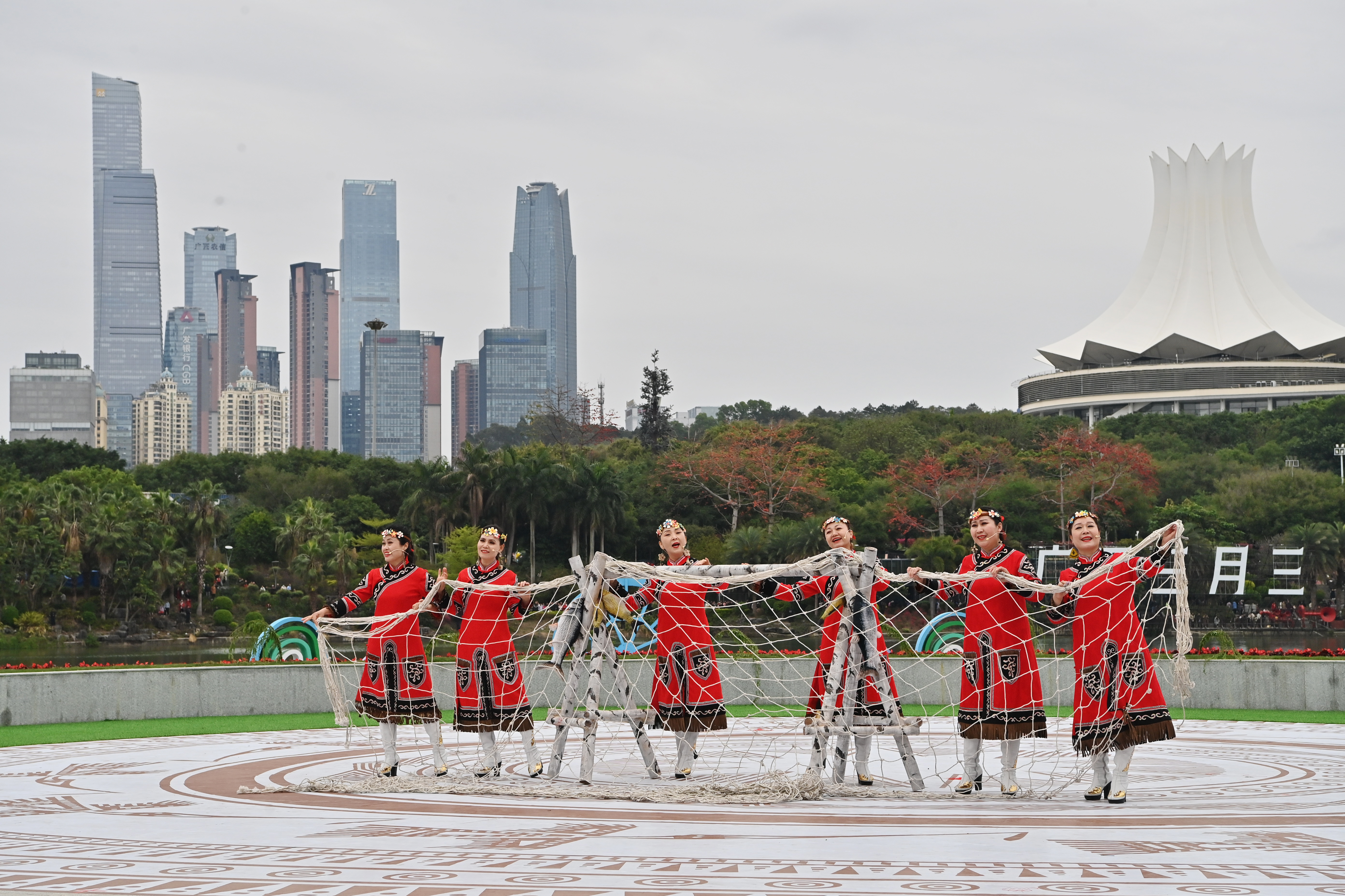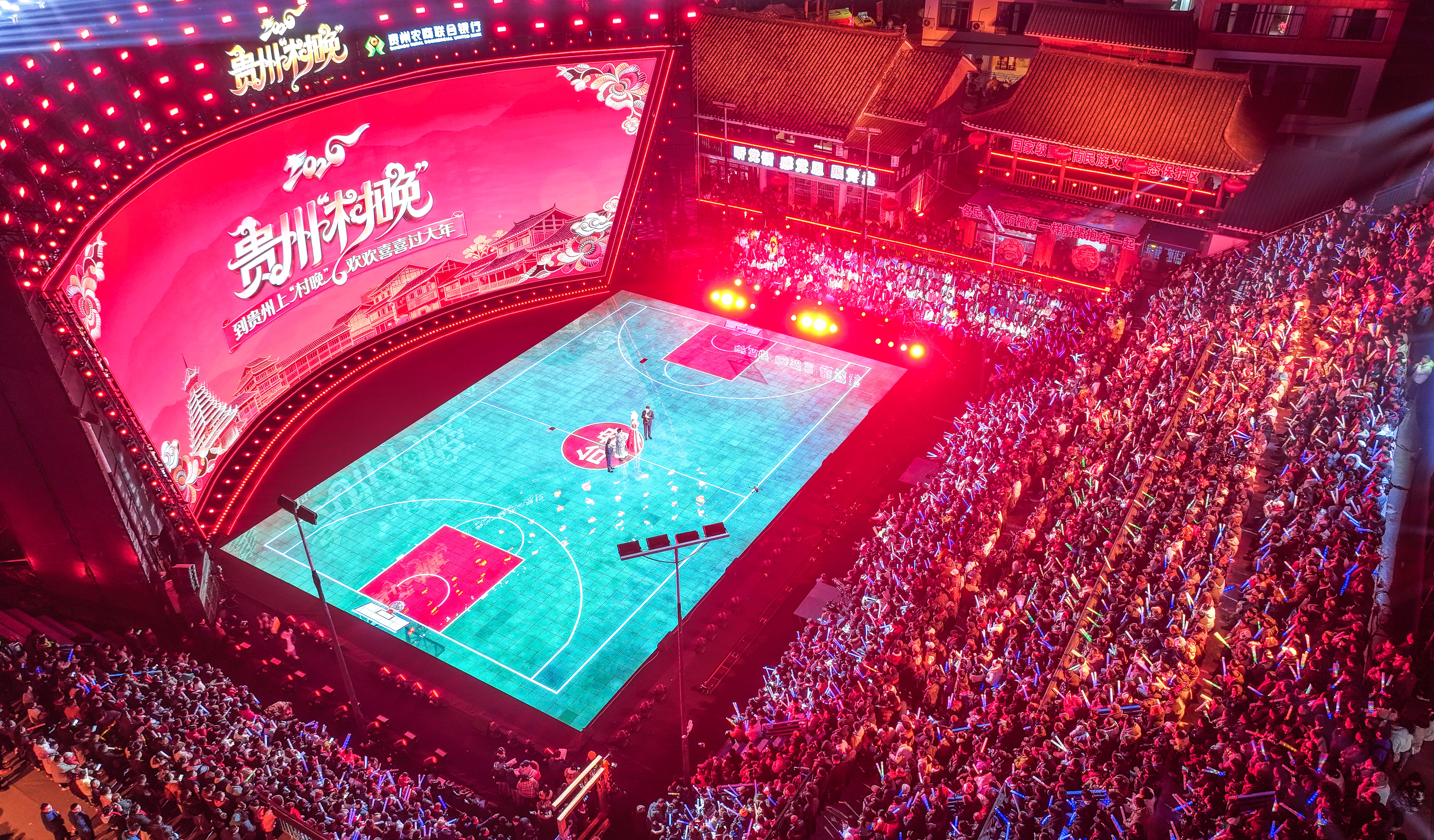 2026年2月3日,观众在贵州省台江县台盘乡“村BA”球场观看贵州“村晚”(无人机照片)。 2025年3月31日,黑龙江村歌队队员在“广西三月三·八桂嘉年华”开幕式暨“四季村歌”活动启动仪式现场演唱《乌苏里船歌》。