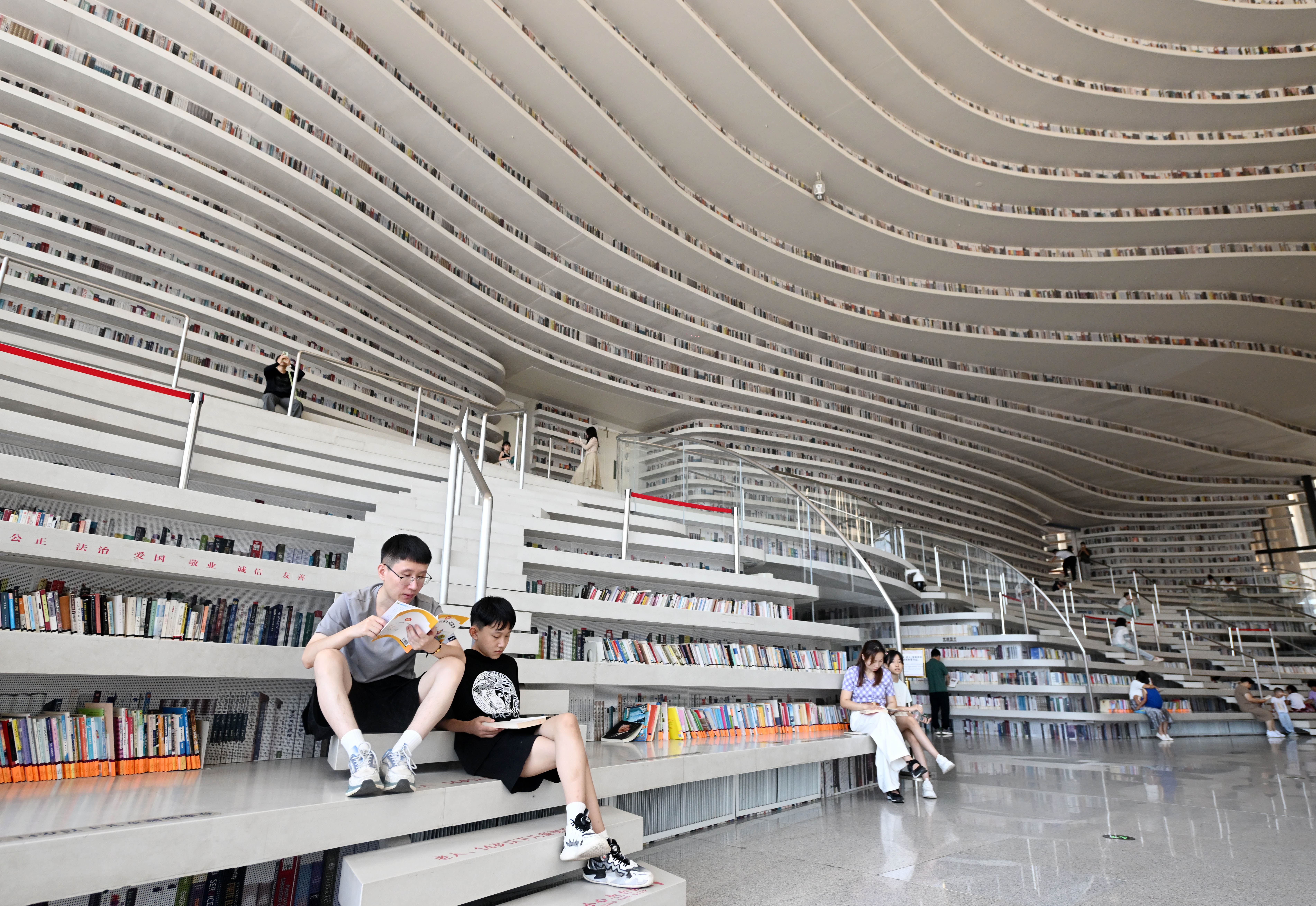 这是中国国家版本馆中央总馆(2022年7月30日摄,无人机照片)。 2025年9月11日,在西藏拉萨市实验小学,孩子们在弹奏扎念琴间隙休息。2014年,“扎念琴制作技艺”入选第四批国家级非物质文化遗产代表性项目名录。 2024年8月27日,市民在天津滨海新区图书馆内阅读。有着“滨海之眼”之称的滨海新区图书馆位于天津滨海文化中心,目前已成为天津滨海新区的文化“新地标”。 2025年9月29日,“百年守护——从紫禁城到故宫博物院”展览开幕式在北京故宫博物院举行,观众参观青铜莲鹤方壶。2025年是故宫博物院建院100周年。