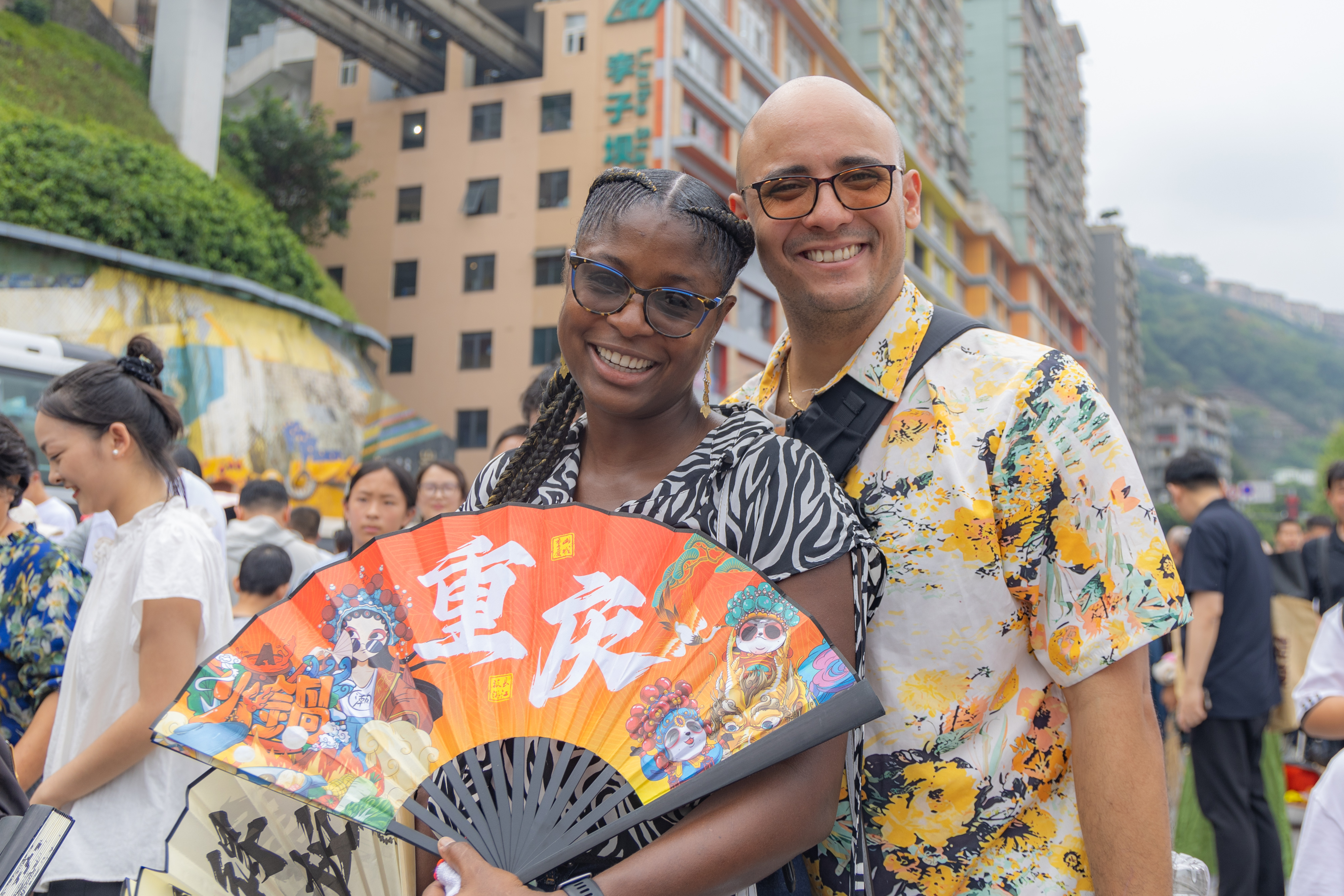 2025年10月3日,加拿大游客克里斯提安(左)和家人在重庆市渝中区李子坝游玩。近年来,不断优化的入境政策为境外游客赴华提供了更多便利,“来华旅游攻略”“赴华购物清单”等成为国外社交媒体热门搜索关键词,“China Travel”的热度延续至今。山城重庆凭借其独特的城市景观和风土人情,吸引不少外国游客前来品尝美食、打卡景点、体验文化。 2025年7月17日,一名留学生(左)带着父母在位于上海市南京路步行街的一家礼品店内品尝特色食品。在免签“朋友圈”持续扩容以及离境退税“即买即退”政策的推动下,“中国游”持续升温,“中国购”也成为入境游新趋势。作为入境游“第一站”的上海见证了我国强劲的入境游消费活力。