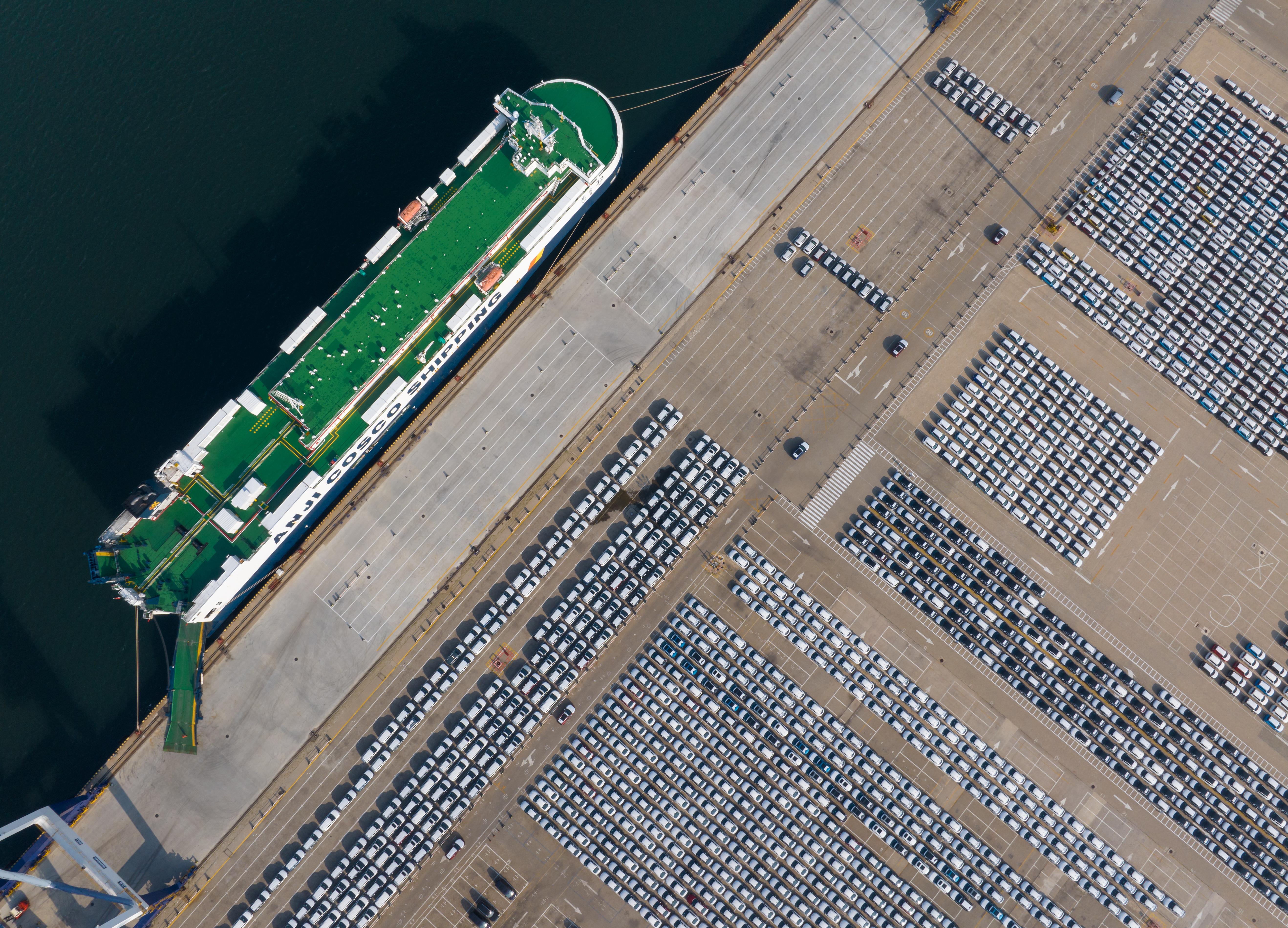 △2024年7月11日,山东烟台,出口的新能源汽车在烟台港专用码头整装待发。