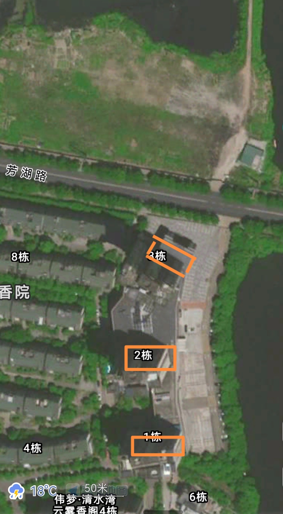 这三栋建筑的北侧和东侧,是空旷的池塘、湿地和河流。此次房屋受损集中在3号楼西南角住户的南侧阳台和西侧卧室。