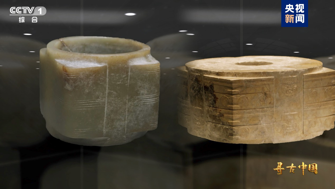 四川三星堆遗址与浙江良渚遗址出土的玉琮对比
