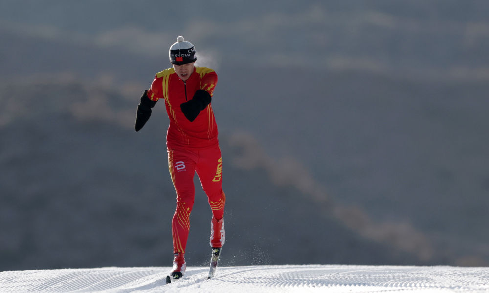 在甘肃白银国家雪上项目训练基地, 集训队队员邱铭洋在训练中(2022年1月13日摄)。新华社记者 杜哲宇 摄