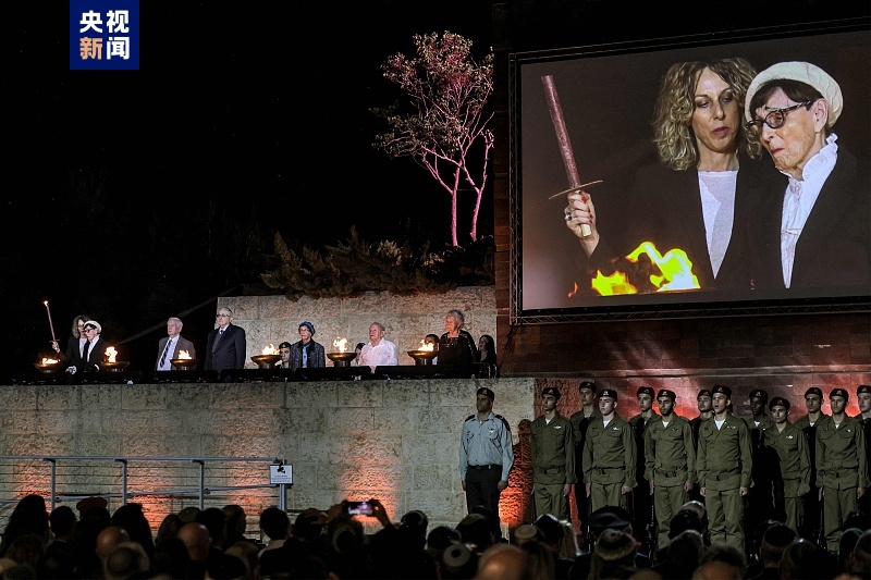 当地时间4月17日晚,以色列在位于耶路撒冷赫茨尔山的亚德瓦希姆大屠杀纪念馆举行大屠杀纪念日活动,悼念第二次世界大战中的犹太死难者。