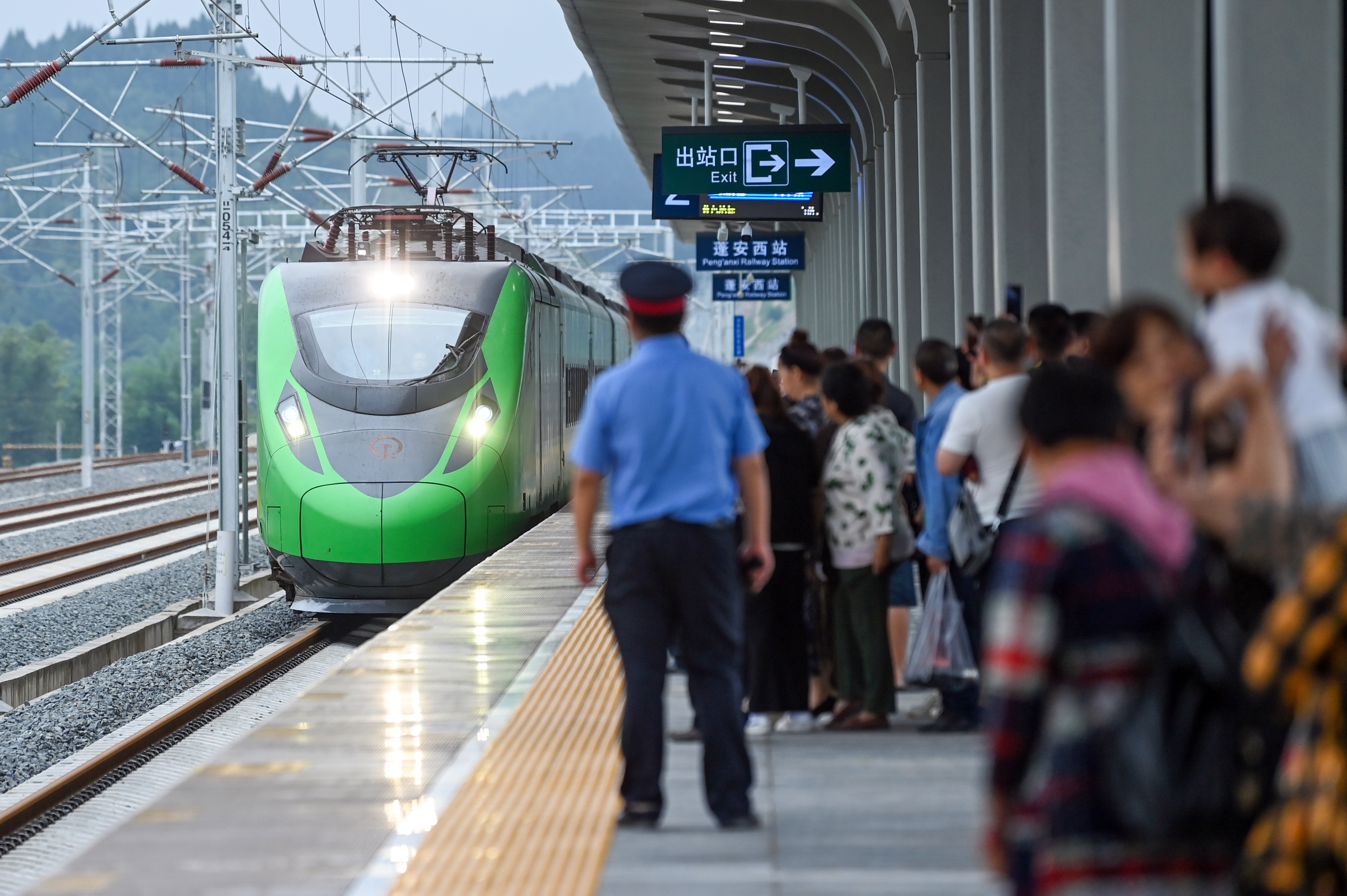 2024年6月27日,巴南高铁共有5趟停靠蓬安西站,出站口外,工作人员为出站旅客们送上麻花、鲜花等特色礼品,欢迎他们成为首批到达蓬安西站的旅客。据公布的最新时刻表显示,目前,巴南高铁上下行共有7趟车次停靠蓬安西站。成都、重庆、巴中等地的游客可乘坐高铁直达蓬安,观百牛渡江,游周子古镇,逛相如故城,品特色美食。